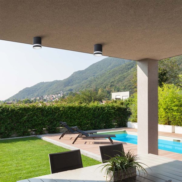 Nowoczesna oprawa o wysokości 12 cm i średnicy 10,2 cm, wykonana z aluminium malowanego proszkowo na kolor czarny. Wyposażona w mleczną szybkę i dekoracyjny pierścień ze szkła szronionego, równomiernie rozprasza światło, tworząc przyjemny klimat. Dzięki klasie szczelności IP54 idealnie sprawdzi się na tarasie, werandzie, przy wejściu do domu czy w altanie.