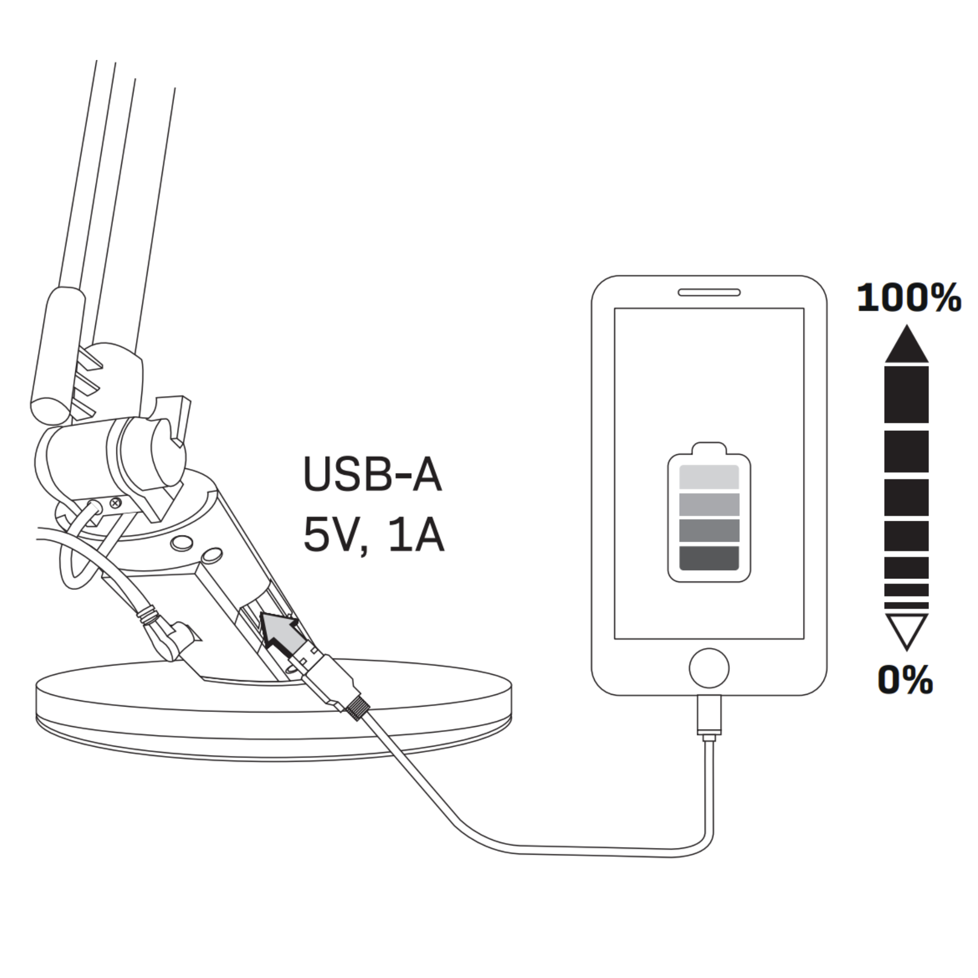 Lampka posiada możliwość regulacji wysokości i kąta nachylenia strumienia światła.