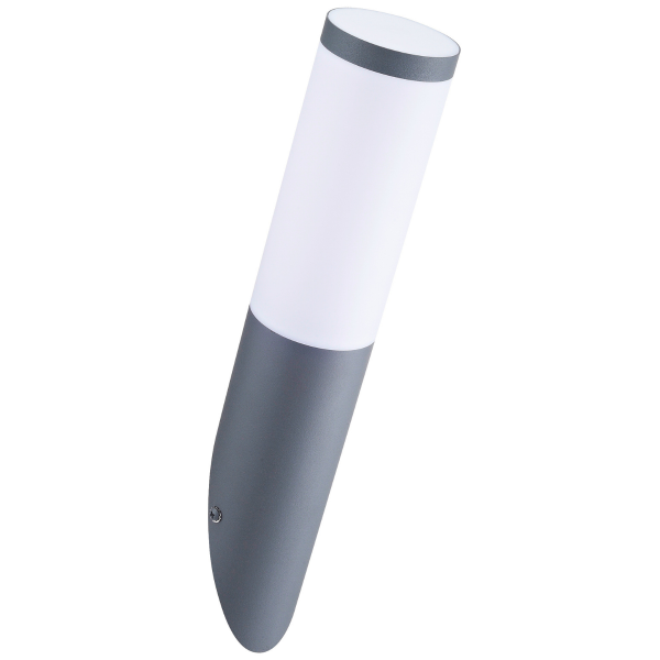 Lampy OSLO to nowoczesne oświetlenie zewnętrzne. Źródło światła zostało osłonięte mlecznym kloszem z tworzywa sztucznego oraz wykończone szarym pierścieniem.