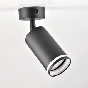 PARIS to nowoczesna oprawa, spot ścienno-sufitowy z wymiennym źródłem światła, wykonany z aluminium w kolorze czarnym. Elementem dekoracyjnym oprawy jest akrylowy odkręcany pierścień.