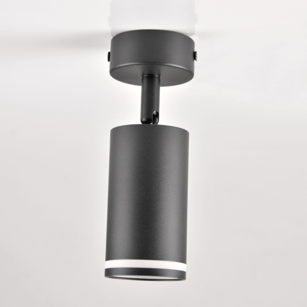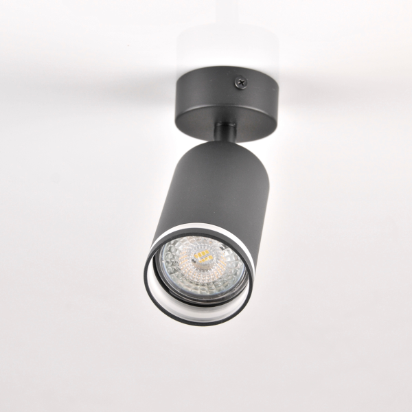 PARIS to nowoczesna oprawa, spot ścienno-sufitowy z wymiennym źródłem światła, wykonany z aluminium w kolorze czarnym. Elementem dekoracyjnym oprawy jest akrylowy odkręcany pierścień.