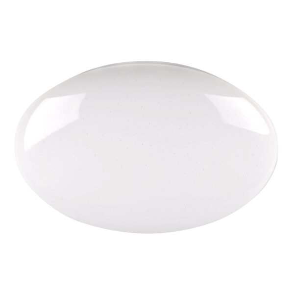 Mleczny klosz wspaniale rozprasza światło, dzięki czemu lampa świeci równomiernie na całej powierzchni, nie występuje efekt świecenia punktowego, czy zaciemnionego miejsca z jednej strony (jak w przypadku tradycyjnych plafonów z wkręcaną żarówką), nie powodując tym samym efektu olśnienia.
