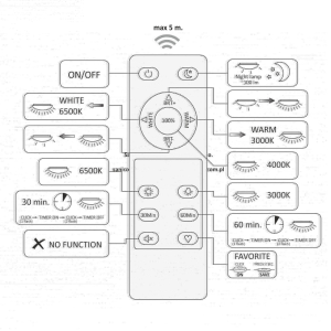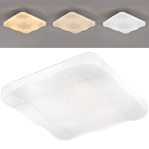 Plafon z pilotem za pomocą którego można płynnie zmienić barwę świecenia od ciepłej białej przez neutralną po zimno białą (3000K-4000K-6500K) oraz wybrać ilość światła, plafon z możliwością ściemniania.