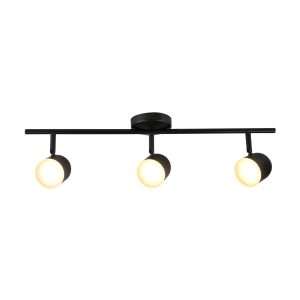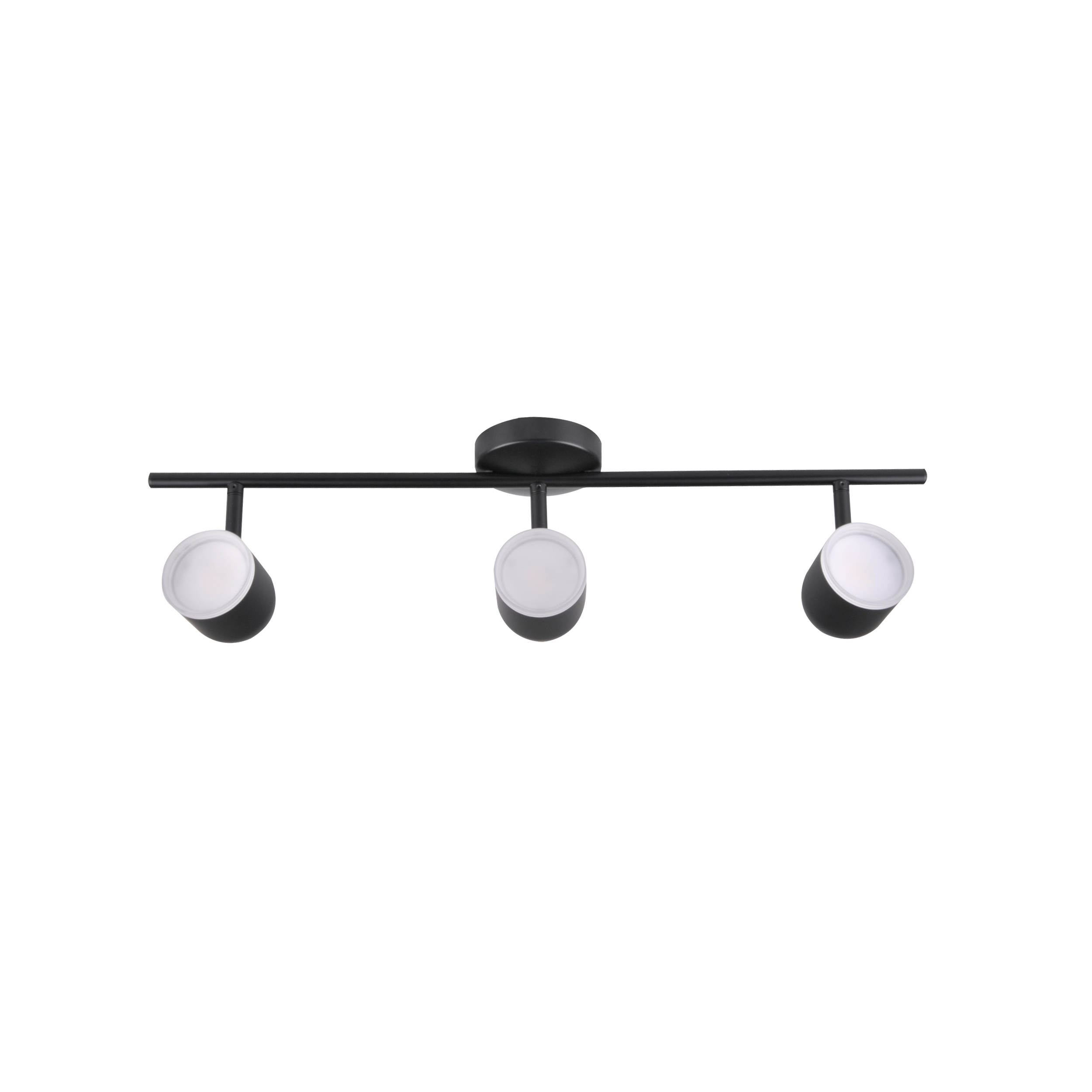 RAWI to trzypunktowa nowoczesna lampa, listwa ścienno-sufitowa z niewymiennym źródłem światła LED, wykonana z metalu w kolorze czarnym oraz akrylowej obręczy.