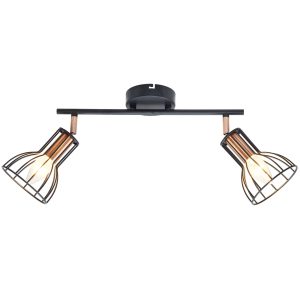 SOFIA to nowoczesna oprawa, dwupunktowa listwa sufitowa w stylu industrialnym (loftowym) wykonana z metalu w kolorze czarnym matowym z elementami miedzi.