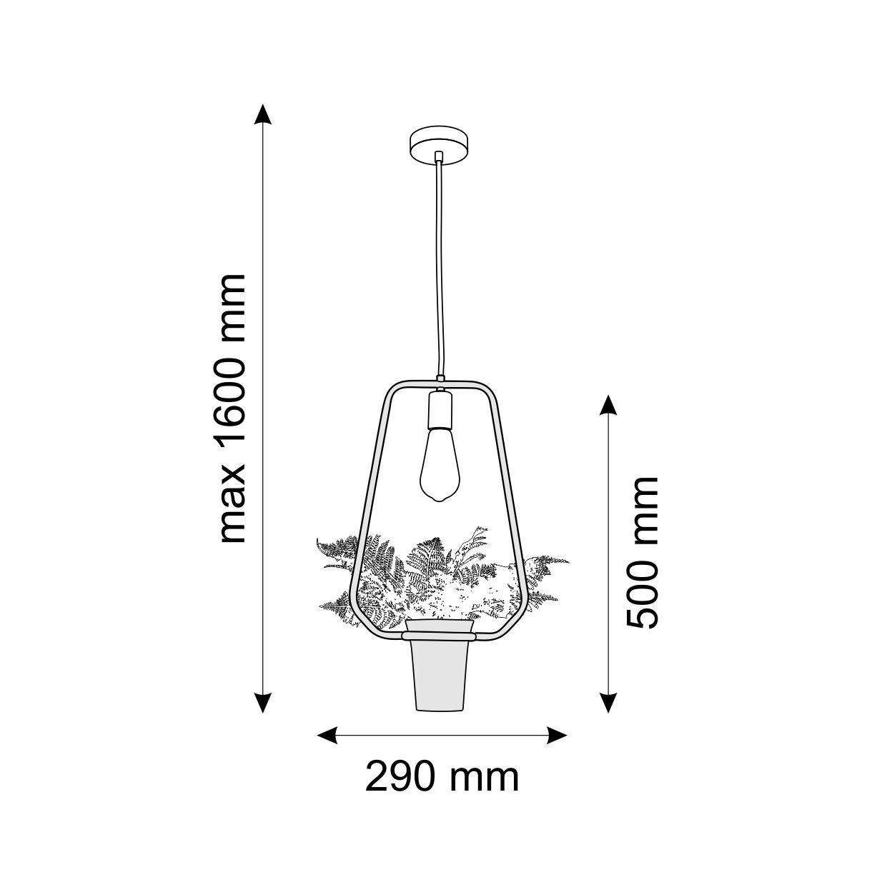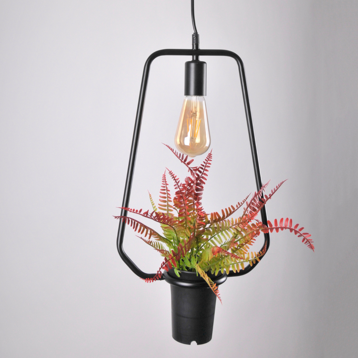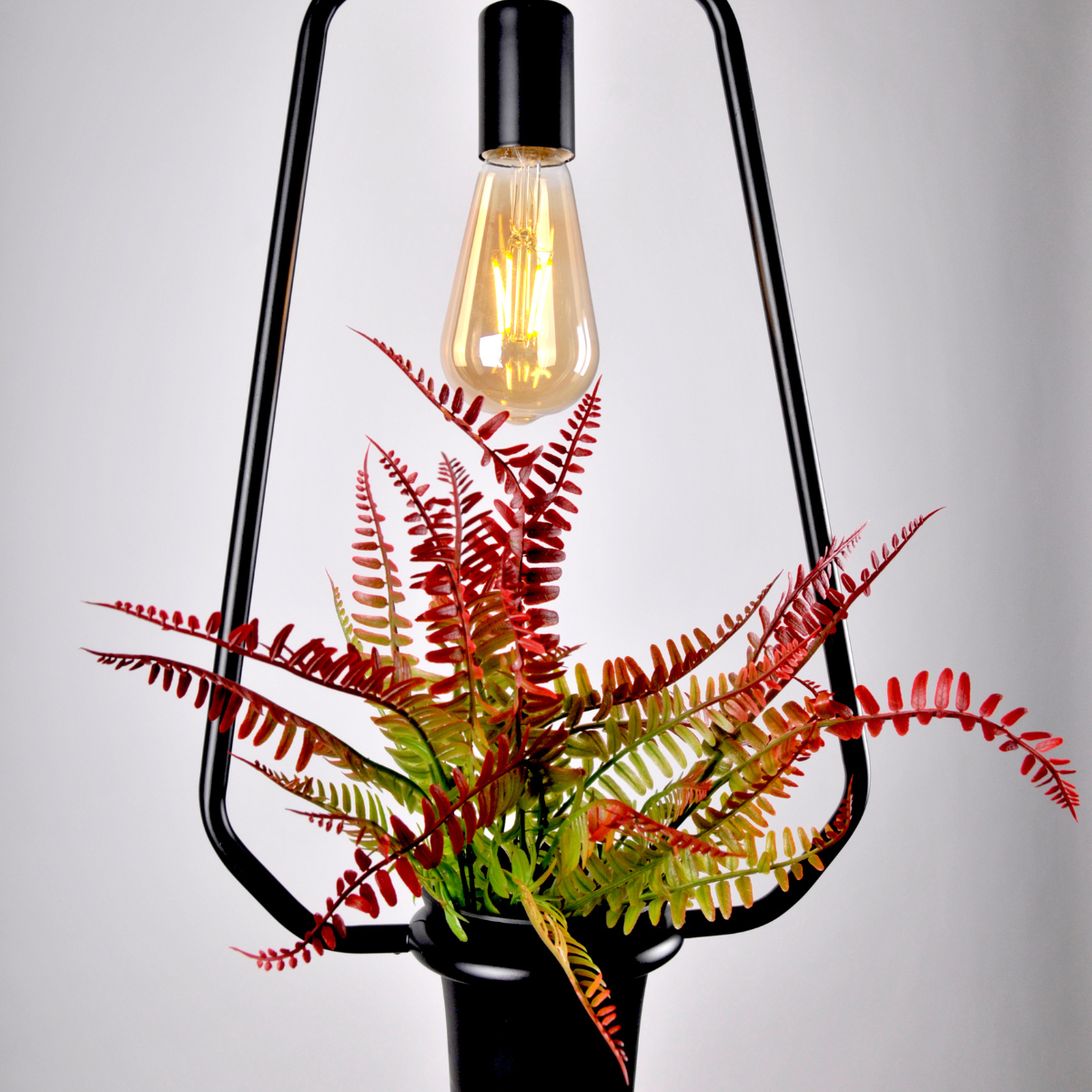 Lampa została wykonana z metalu w kolorze czarnym.  Lampa posiada doniczkę z kwiatkiem co dodatkowo wzmacnia jej walory wizualne oraz daje niesamowity urok i dekoracyjny charakter.