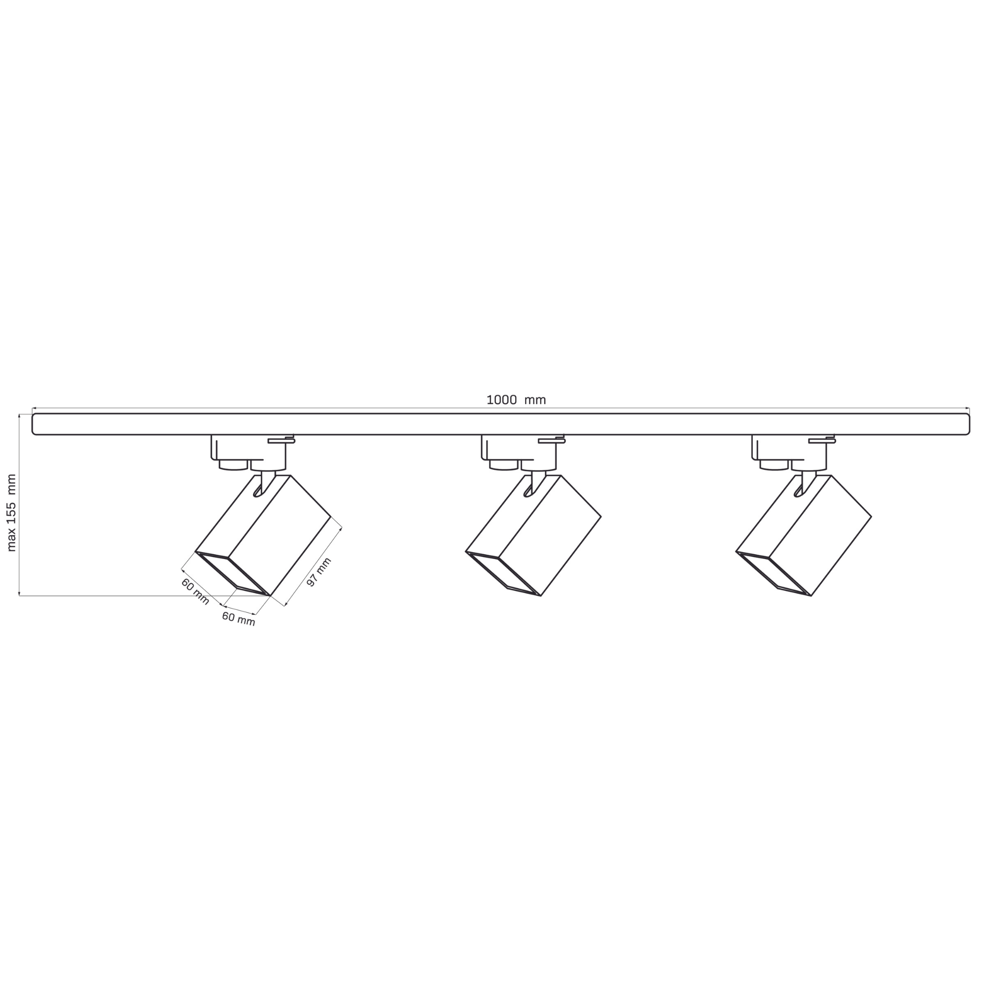 - W skład zestawu wchodzi: szyna 1m + reflektory 3 sztuki.