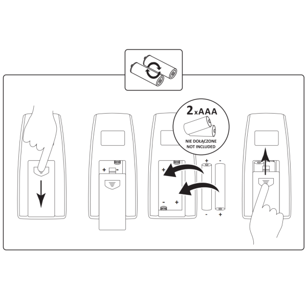 - Pilot w zestawie: baterie 2 x AAA (brak w zestawie)