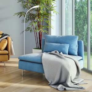 Nowoczesna lampa podłogowa LED wykonana z tworzywa sztucznego przeznaczona do zastosowań mieszkaniowych.