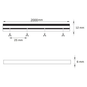 • Możliwość cięcia w wyznaczonych miejscach co 25mm = miejsce cięcia oznaczone na taśmie LED