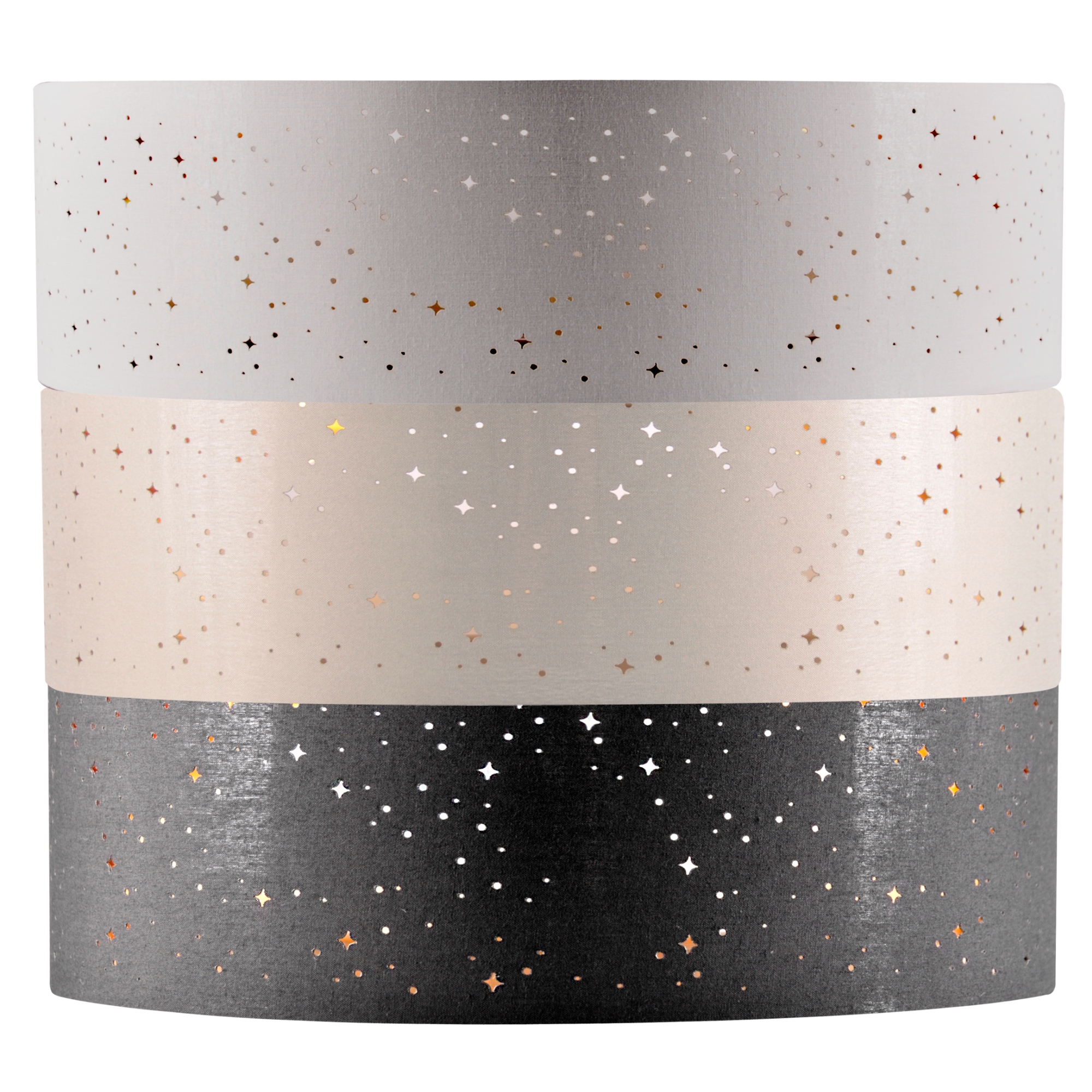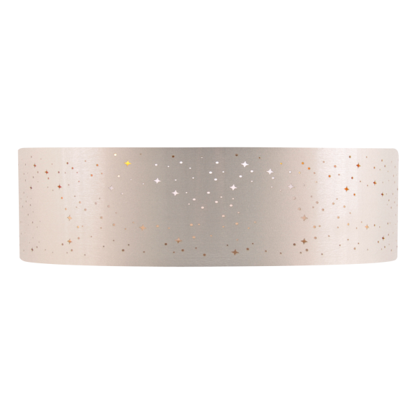 Zewnętrzna obudowa w kolorze taupe, kontrastuje ze złotym błyszczącym wnętrzem, z którego wydobywa się wyjątkowo ciepłe i miękkie światło. Dodatkowym walorem wizualnym są otworki w abażurze przypominające rozgwieżdżone niebo.