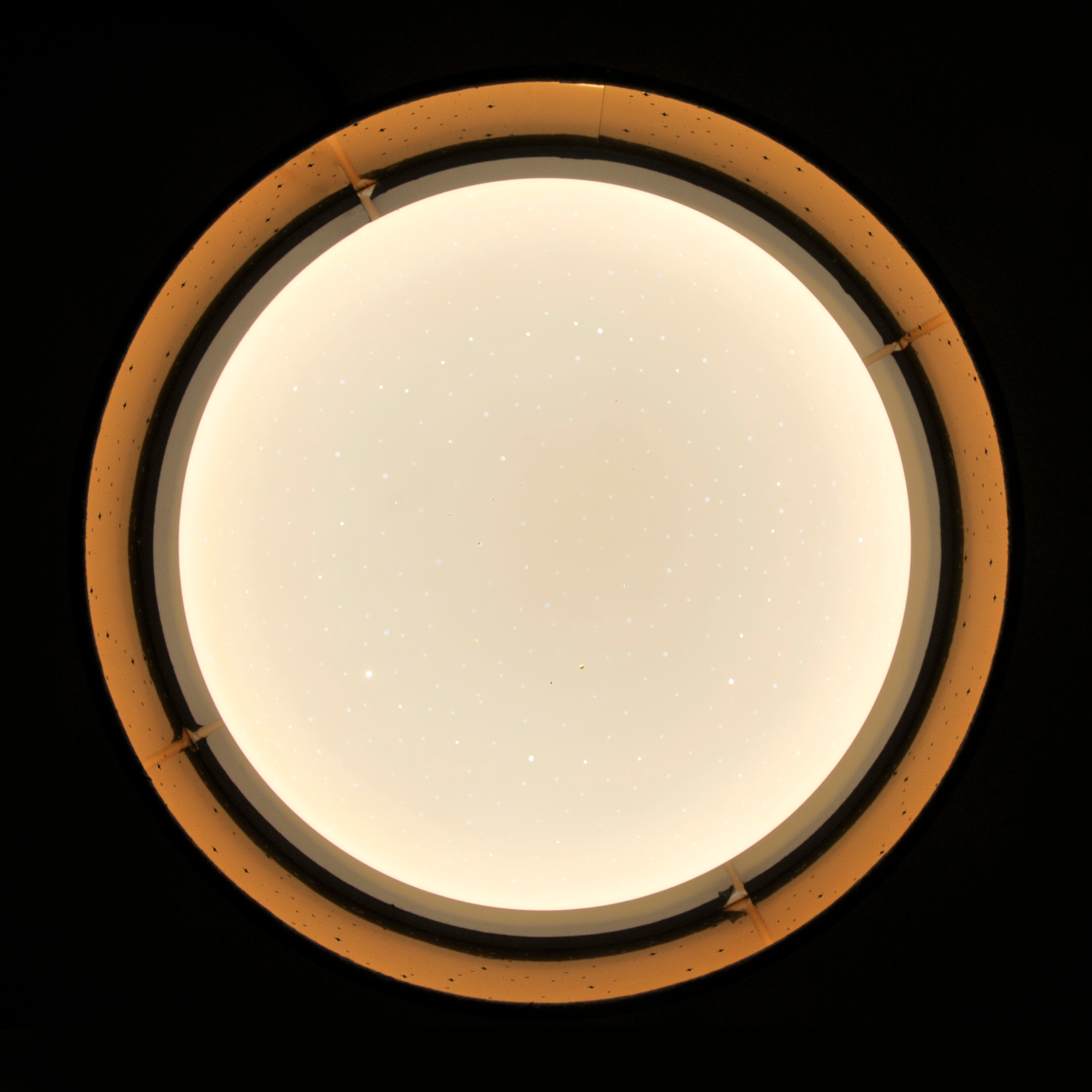 Dzięki mlecznemu kloszowi, lampa wspaniale rozprasza światło, a po włączeniu daje wrażenie gwieździstego nieba.