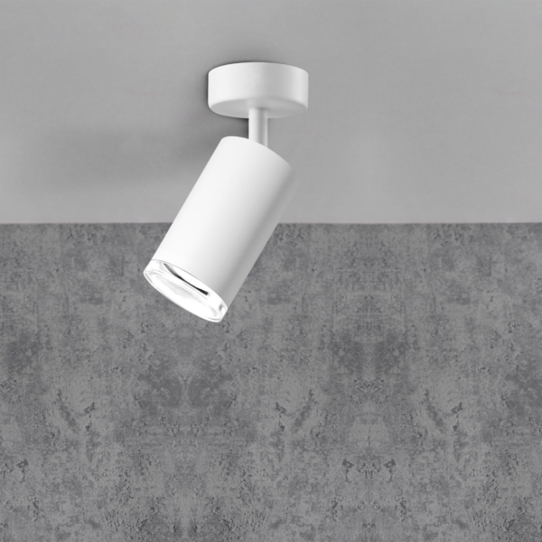 TURYN to nowoczesna oprawa, spot ścienno-sufitowy z wymiennym źródłem światła, wykonana z aluminium w kolorze białym, oraz transparentnym pierścieniem.