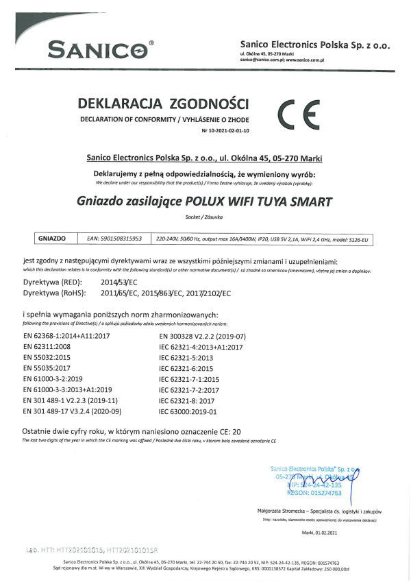 oświadcza, że urządzenia radioelektryczne wymienione w niniejszej instrukcji są zgodne z dyrektywą 2014/53/WE.