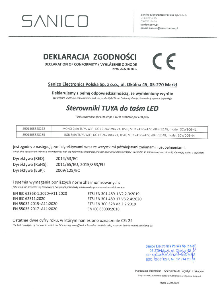 oświadcza, że urządzenia radioelektryczne wymienione w niniejszej instrukcji są zgodne z dyrektywą 2014/53/WE.