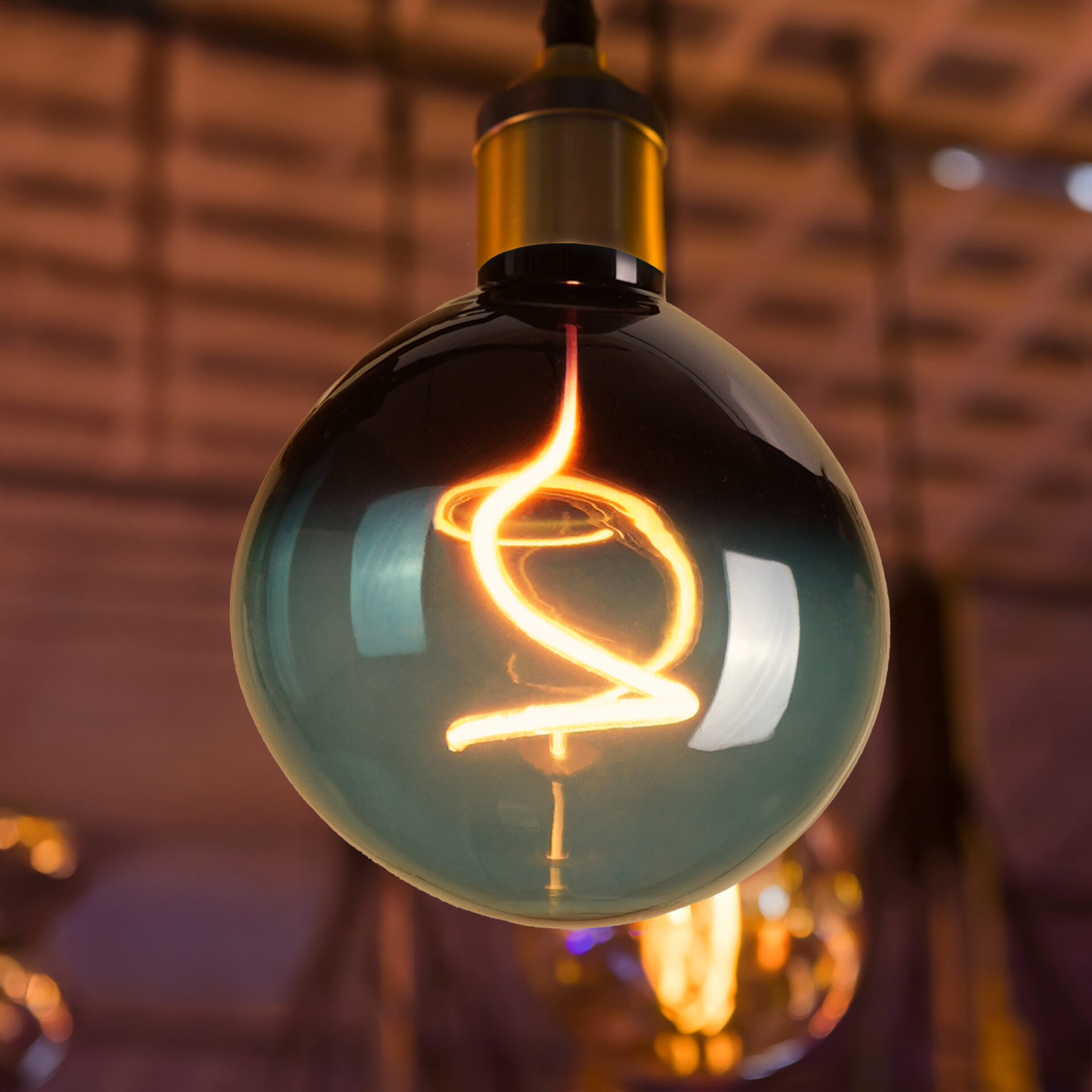 Podkreśl charakter wnętrza stylową żarówką Sanico Goldlux G125 z serii DecoVintage. Jej klasyczny kulisty kształt, zielone szkło i efektowna świecąca spirala LED sprawiają, że sama w sobie staje się dekoracją.