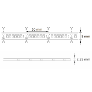 - Możliwość cięcia w wyznaczonych miejscach co 5 cm = 6 x LED – miejsce cięcia oznaczone na taśmie LED