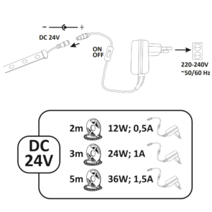 - Zasilacz w zestawie 24V DC 1,5A 36W