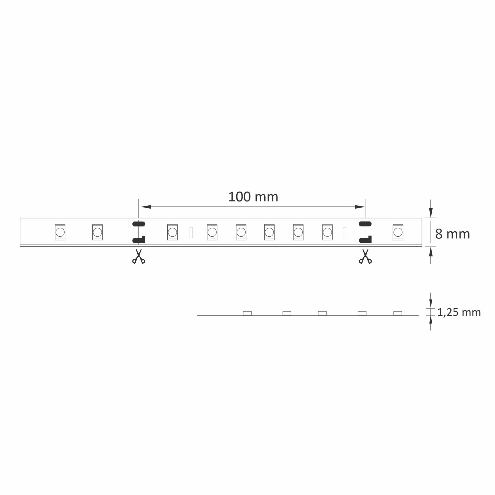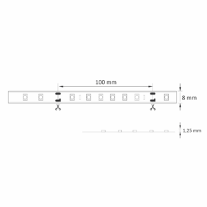 - Możliwość cięcia w wyznaczonych miejscach co 10 cm = 6 x LED – miejsce cięcia oznaczone na taśmie LED