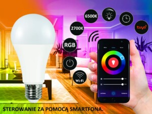Po zainstalowaniu aplikacji TUYAsmart w smartfonie i połączeniu z produktem można nimi sterować za pomocą naszej domowej sieci WiFi. Smartfon z uruchomioną aplikacją TUYA musi być połączony z siecią WiFi. Produkty z serii WIFI SMART automatycznie nawiązują połączenie z siecią bezprzewodową. Poprzez aplikację TUYA możemy sterować wieloma funkcjami: barwą światła, ilością światła (ściemnianie), zmianą koloru i scen w przypadku produktów RGB. Możemy także zaprogramować automatyczne włączanie i wyłączanie. Wszystkie funkcje możemy kontrolować z dowolnego miejsca na świecie, pod warunkiem, że nasz smartfon ma dostęp do internetu, a sterowany produkt jest w zasięgu domowej sieci Wi-Fi.